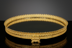 Although new shapes and motives for the decoration developed, the style traits of the Louis XIV persisted for a long time. On these objects this can be seen in the rosette and palmette motives and the lambrequin at the top of the base.